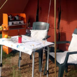 Van alle gemakken voorzien met een tafel, goede stoelen en kleine ijskast. Heb je geen zin in gesleep met spullen, reserveer dan deze tent!