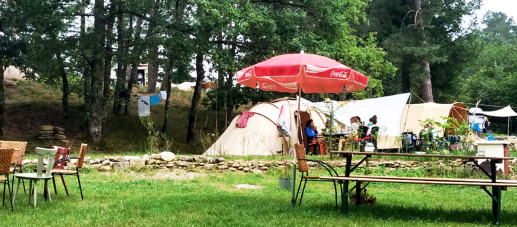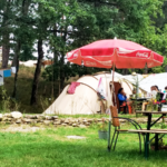 We hebben grote kampeerplaatsen onder hoge pijnbomen waar zon en schaduw elkaar afwisselen. De camping is terrasvormig, dus op iedere plek is het uitzicht mooi. Er is mogelijkheid uw auto bij de tent te parkeren. Er is stroomvoorziening aanwezig.